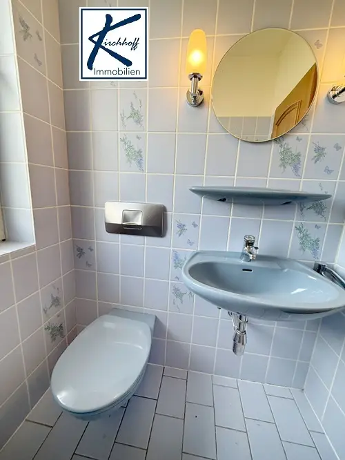 Im Obergeschoss erwartet Sie ein lichtdurchflutetes Wohnzimmer, das mit einem gemütlichen Kamin ausgestattet ist – perfekt für entspannte Abende. Durch das Wohnzimmer gelangen Sie außerdem auf die sonnige Dachterrasse, die Ihnen einen ruhigen Rückzugsort unter freiem Himmel bietet und zum Verweilen einlädt. Direkt angrenzend an das Wohnzimmer befindet sich der einladende Essbereich, der offen gestaltet ist und eine harmonische Verbindung mit dem Wohnzimmer eingeht. Die große Küche, die eine funktionale Einbauküche umfasst, ist im Kaufpreis enthalten und bleibt im Haus, sodass Sie sofort loslegen können. Ein praktisches Gäste-WC rundet das Angebot auf dieser Etage ab.