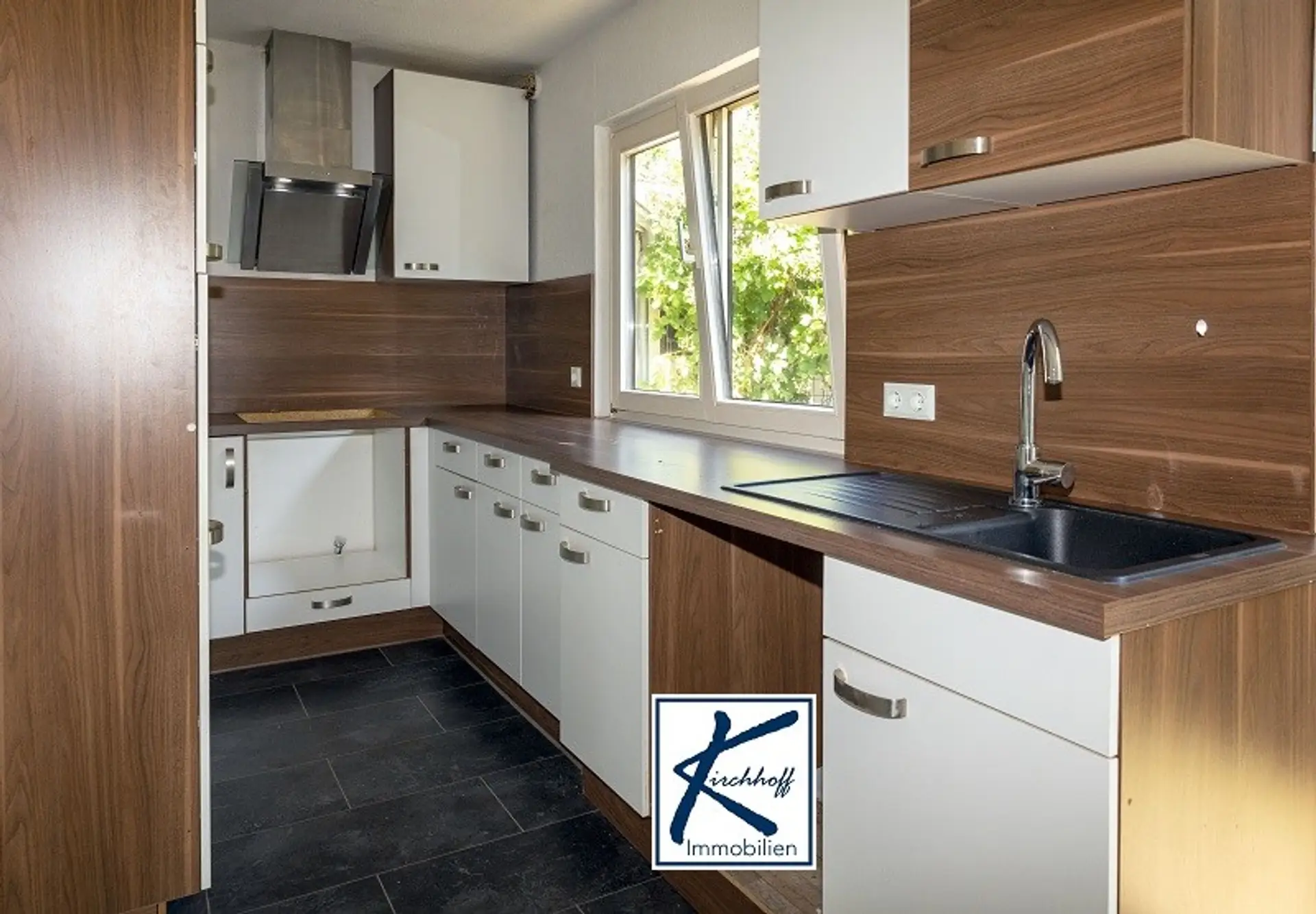 Der großzügige Essbereich lädt zum geselligen Beisammensein mit Familie und Freunden einlädt. Die angrenzende Küche ist mit einer Einbauküche ausgestattet, die Ihnen viel Stauraum bietet. Bitte beachten Sie, dass ein E-Herd und ein Geschirrspüler nicht vorhanden sind, jedoch ein Kühlschrank zur Verfügung steht.